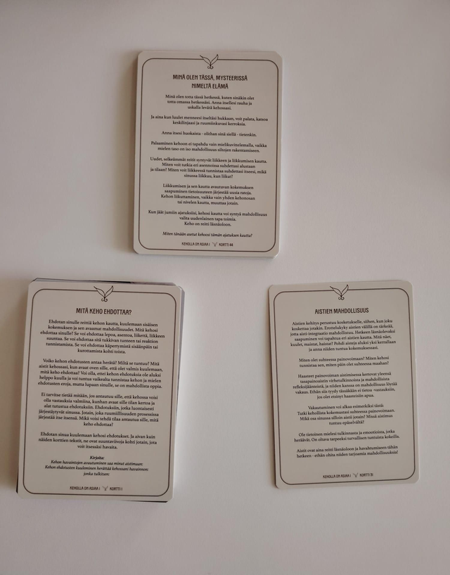 terapeuttiset, toiminnalliset kortit kutsuvat sinut tuntemaan ja tunnistamaan kehosi